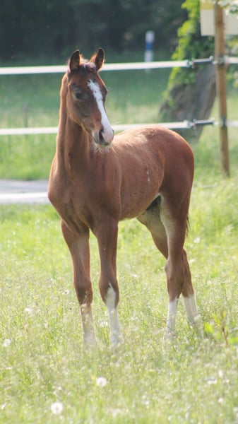 Diese Stute besticht durch ihren charmanten Charakter und ihre ansprechende Erscheinung. Sie hat sich in der Vergangenheit sowohl im Springen als auch in der Zucht bewährt und zeigte viel Potenzial. Durch eine Weideverletzung musste ich sie leider aus dem Sport nehmen. Sie ist 2009 geboren und 168 cm groß. Zur Zeit hat sie ein tolles Hengstfohlen bei Fuß, ab Ende des Jahres kann sie umziehen. Solange übernehme ich die Kosten, nur könnte man die Stute für 2026 jetzt noch belegen. Sie hat bereits mehrere prämierte Fohlen. Bei Interesse oder für weitere Informationen stehen wir Ihnen gerne zur Verfügung.