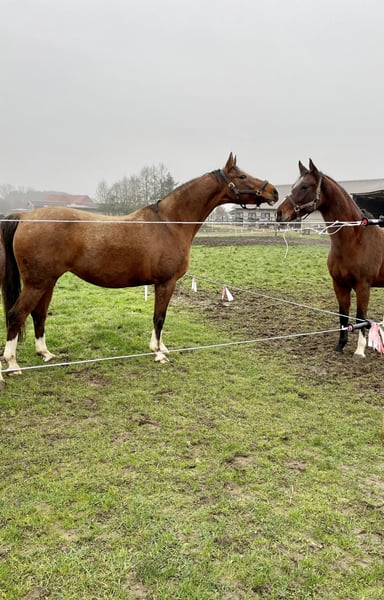 This mare impresses with her charming character and appealing appearance. She has proven herself in the past in both show jumping and breeding, showing a lot of potential. Unfortunately, due to a pasture injury, I had to take her out of sports. She was born in 2009 and stands 168 cm tall. Currently, she has a wonderful colt at her side, and she will be available for relocation at the end of the year. In the meantime, I will cover the costs, but the mare could be bred for 2026 now. She has already produced several award-winning foals. If you are interested or need further information, please feel free to contact us.