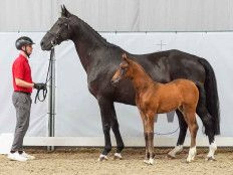 Verkaufe elegante Westfale-Stute Diese wunderschöne braune Stute wurde im Jahr 2024 geboren und beeindruckt durch ihr edles Erscheinungsbild sowie ihre vielversprechende Abstammung. Die Stute ist gesund, freundlich im Umgang und besitzt ein angenehmes Temperament. Stute kann auf Wunsch im Aufzuchtbetrieb bleiben. Eventuell Inzahlungnahme bzw. Tausch von schulbetriebgeeignetem Pferd oder Springpferd möglich. Bei Interesse stehe ich gerne für weitere Informationen und eine Besichtigung zur Verfügung. Ergreifen Sie die Chance, eine vielversprechende Nachwuchsstute in Ihr Team aufzunehmen!