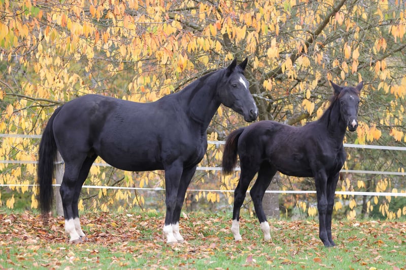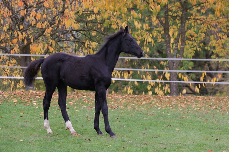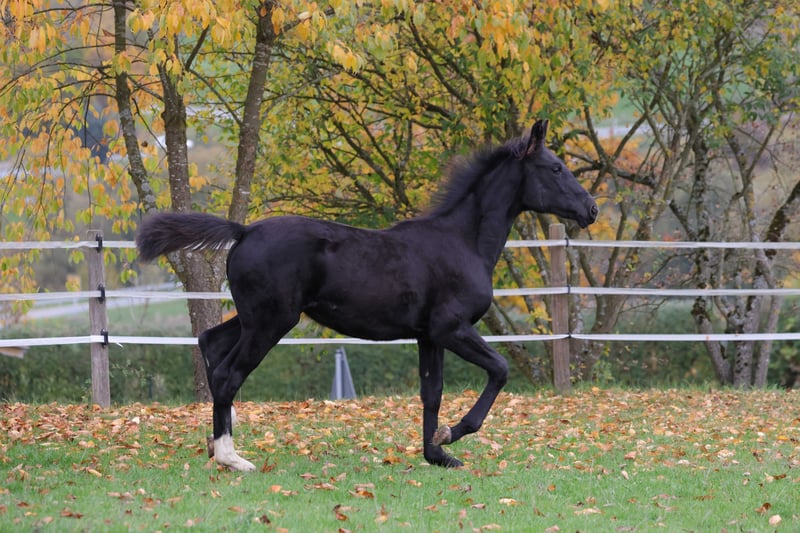 Zum Verkauf steht eine typvolle einjährige Westfalen Stute in edler Rappfarbe mit vielversprechendem Bewegungspotenzial. Rasse: Westfälisches Reitpferd Geschlecht: Stute Alter: 1 Jahr (am 29.04.2025 geboren) Farbe: Rappe Stockmaß: altersentsprechend im Wachstum Die junge Stute überzeugt mit einem korrekten Fundament, guter Oberlinie und elastischen, raumgreifenden Bewegungen. Sie zeigt bereits jetzt eine sehr gute Balance und Taktklarheit – beste Voraussetzungen für eine spätere Karriere im Sport. Sie wächst artgerecht im Herdenverband auf, ist gut sozialisiert und kennt das Fohlen-ABC. Im täglichen Umgang präsentiert sie sich brav, aufmerksam und menschenbezogen. Aufgrund ihrer Qualität und ihres Auftretens eignet sie sich perspektivisch hervorragend für den ambitionierten Reitsport sowie für die Zucht. Nur in fördernde und wertschätzende Hände abzugeben.