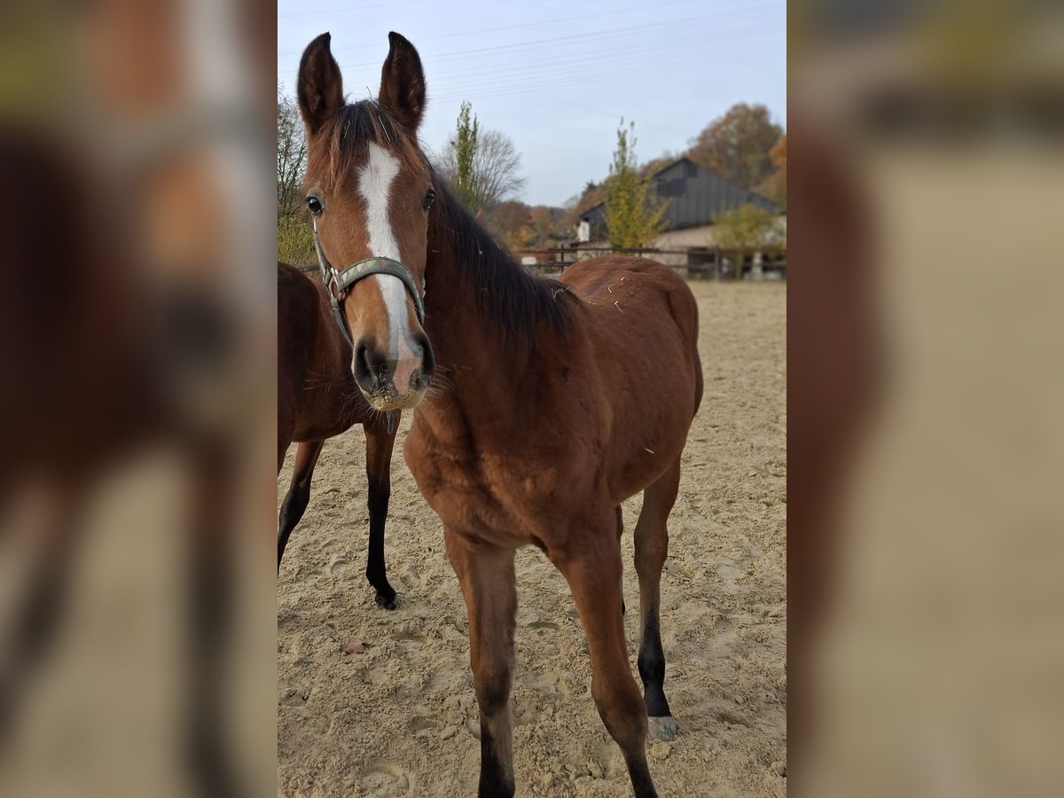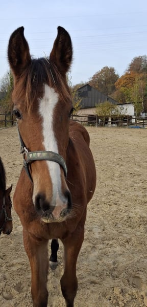 Jährling, geboren im April 2025. Schicke braune Jährlingsstute von Untouched aus einer For Pleasure / Landjonker Mutter.