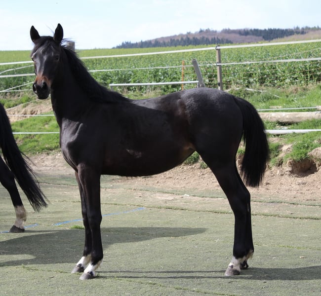 Wunderschöne Junge Lady in typvoller dunkler Aufmachung von 03.2025 Sehr gute GGA Ihre Blutlinie lässt hoffen auf eine absolute Allrounderin. Ihr Vater höchst erfolgreich in Dressur und Springen ebenso ihr Mutterstamm. Auf diesem Weg sucht sie ein neues Zuhause , in dem sie in ein paar Jahren gefördert wird und Menschen glücklich machen kann.