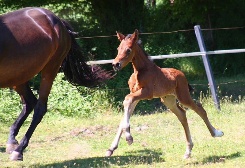 Verkaufsanzeige – Stutfohlen von Dark Dynamic x For Gold x Araconit 🌟 Zum Verkauf steht ein herausragendes, bewegungsstarkes Stutfohlen mit exzellentem Pedigree: Dark Dynamic x For Gold x Araconit – eine leistungsgeprägte Anpaarung, die keine Wünsche offenlässt. Das Fohlen überzeugt mit klarer Aufwärtstendenz in allen drei Grundgangarten, beeindruckender Mechanik und natürlichem Gleichgewicht. Typvoll und mit viel Präsenz steht sie im Hengsttyp, dabei korrekt im Fundament und mit viel Ausdruck. Mütterlicherseits stammt sie aus einer verbandsprämierten Stute, was ihre züchterische Qualität zusätzlich unterstreicht. Ein ideales Nachwuchspferd für Sport und Zucht, mit besten Voraussetzungen für eine erfolgreiche Zukunft.