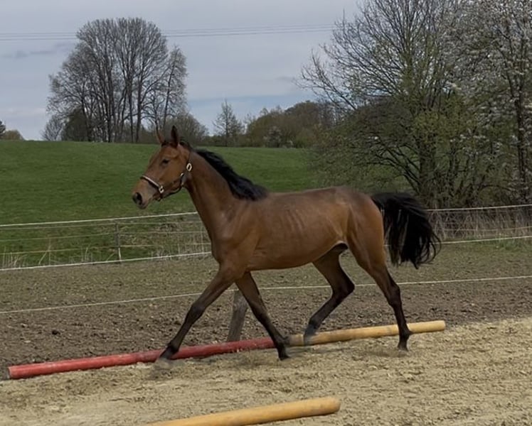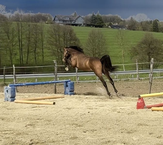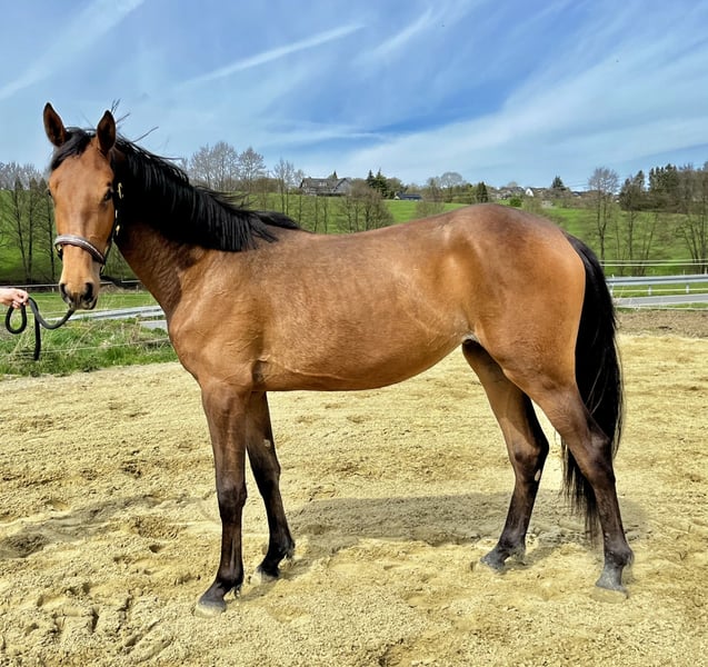 Pokers Marie – vielversprechende Westfalenstute mit Top-Abstammung für den Springsport Zum Verkauf steht die moderne und großrahmige Westfalenstute Pokers Marie, geboren im Juni 2024, mit besten Voraussetzungen für eine erfolgreiche Zukunft im Springsport. Die Stute misst aktuell ca. 165 cm und wird voraussichtlich ein Endmaß von deutlich über 170 cm erreichen. Abstammend von Poker de Mariposa aus einer leistungsgeprüften Mutterlinie (Carrico x Arpeggio), deren Mutter als Hauptprämienstute ausgezeichnet wurde, vereint sie hervorragende Genetik mit sportlicher Aufmachung. Sie stammt direkt vom Züchter und ist im Herdenverband artgerecht aufgewachsen, was sich in ihrem ausgeglichenen Wesen und ihrer klaren, ehrlichen Art widerspiegelt. Bereits jetzt überzeugt sie durch sehr gute Grundgangarten, eine kraftvolle, aktive Hinterhand sowie eine klare Einstellung. Sie zeigt sich aufmerksam, lernwillig und unkompliziert im täglichen Umgang. Beim altersgerecht aufgebauten Freispringen präsentiert sich Pokers Marie mit guter Übersicht, Vermögen und viel Gleichmaß. Sie geht die Aufgabe gelassen und motiviert an und lässt bereits jetzt ihre Qualität am Sprung erkennen. Im Umgang ist sie bestens erzogen: Hufschmied, Anbinden, Putzen sowie Spaziergänge sind ihr vertraut. Eine hochinteressante Nachwuchsstute für ambitionierte Reiter und Züchter, die Wert auf Qualität, Charakter und Perspektive legen.
