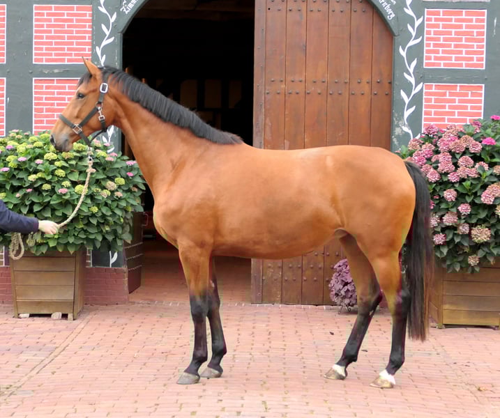 Lilli Marleen is a top offer for the experienced rider. At just 2.5 years old, she already measures 172 cm and will certainly continue to grow. She stands on an extremely correct foundation and has a good conformation. In her movement, she is characterized by an active hind leg, which is always complemented by a swinging back into an attractive front leg. Despite her size, she already possesses a lot of balance. She is well-mannered, familiar with the basics of foal training, and behaves well with the farrier. She is accustomed to both open stable housing and 24/7 pasture. In the herd, she holds a middle rank. A comprehensive radiographic examination from early 2025 is available and can be sent; she has only known the veterinarian for vaccinations so far. Her pedigree also makes her interesting for breeding. Her sire, Lilliano, competed at the highest level in dressage, while her dam traces back through the world-renowned sires Vitalis and Totilas to the full sister of the stallion Surprice, who notably produced Isabell Werth’s top mare Superb. Still in the breeder's hands, we are looking for a new home for Lilli that appreciates her size and wants to calmly introduce her to her role as a riding horse. She can be viewed at any time; feel free to contact us!