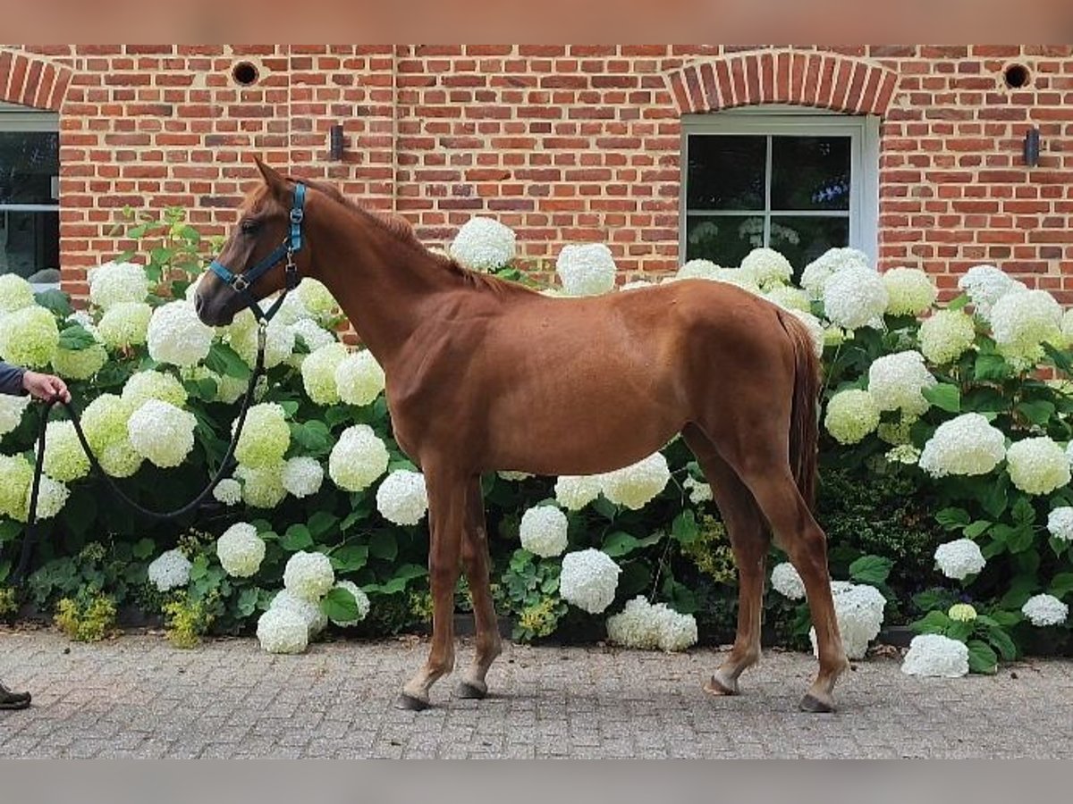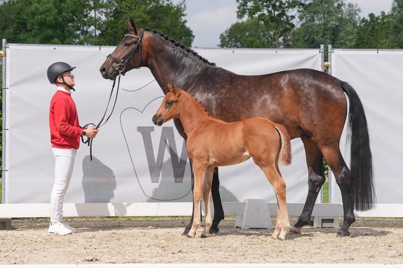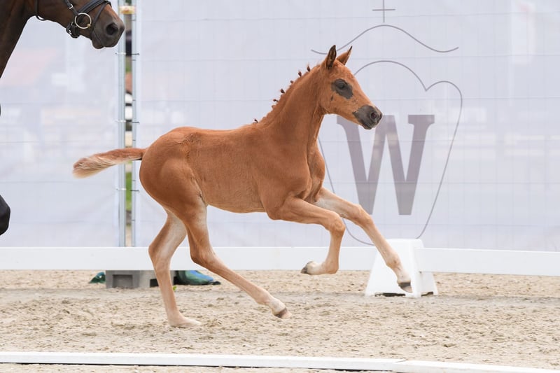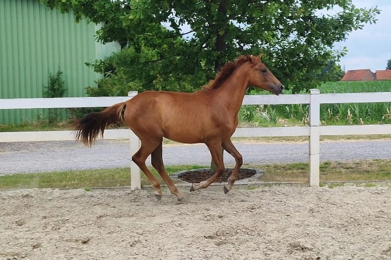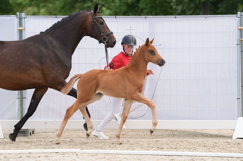 Exclusive filly by Selectric out of a Sandro Hit x Royal Diamond dam. Beautiful dark chestnut mare for sale as a weanling from the breeder. Scarlett is an all-round healthy, bright, self-confident weanling foal with a lot of heart. Just the right basis for the big arena. Inquiries gladly by whatsapp +491704896517
