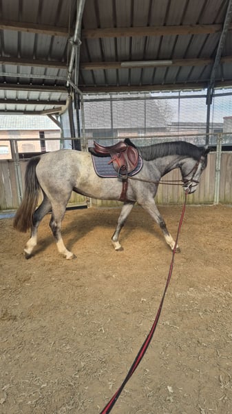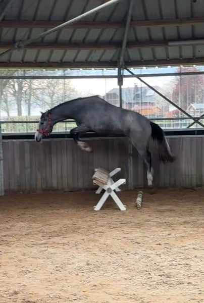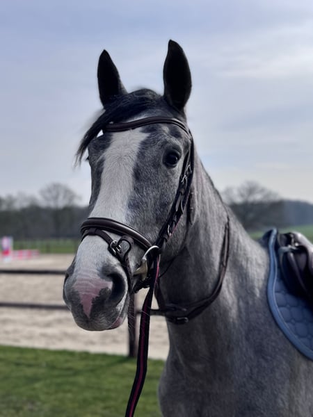 Westphalian Mare (born 2023), grey, currently approximately 15.5 hh, with great jumping potential For sale is a lovely Westphalian grey mare by Alaba, born in May 2023. This three-year-old mare impresses with her friendly, balanced temperament and is especially well-suited for riders of smaller stature. She has three good basic gaits. Training & Character: - Quiet and cooperative when grooming and picking up hooves - Familiar with the blacksmith and behaves exemplary - Used to saddle and bridle and regularly lunged - A rider has already sat on her – she handled this very calmly and bravely - Shows promising potential in free jumping - Learns new tasks quickly and reliably - Currently worked gently on the longe and grazing An uncomplicated, young mare with a good attitude and lots of potential for show jumping or versatile development. If you are interested or have further questions, I look forward to hearing from you.