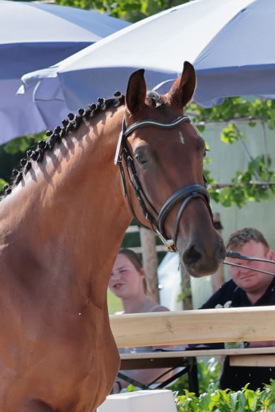 **Verkaufsanzeige: Westfalen Stute** Zum Verkauf steht eine vielversprechende Westfalen Stute, geboren im Jahr 2022. Diese junge Dame präsentiert sich in einem eleganten braunen Gewand und beeindruckt mit einem Stockmaß von 164 cm. Sie zeigt bereits jetzt großes Potenzial für die Dressur und besticht durch ihre hervorragenden Bewegungen und ihre elegante Erscheinung. Die Stute ist neugierig und lernwillig, was sie zu einem idealen Partner für ambitionierte Reiter macht, die auf der Suche nach einem Nachwuchstalent sind. Röntgenbilder liegen vor und sind ok Wenn Sie Interesse an dieser wunderbaren Westfalen Stute haben und mehr über sie erfahren möchten, freuen wir uns auf Ihre Kontaktaufnahme.