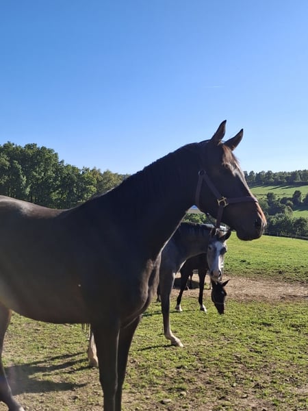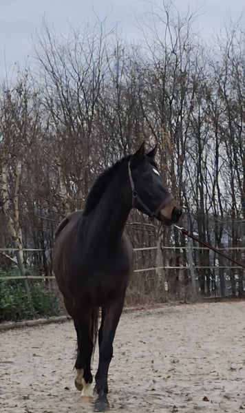 We are offering a talented and affectionate Westphalian mare for sale. Pedigree: Diamond Deluxe x Blickpunkt This young mare impresses not only with her attractive conformation but also with her charming temperament and eagerness to learn. She shows great potential in dressage and is ready to be further developed with an experienced rider. The mare is currently in our care for upbringing and can be visited at any time by appointment.