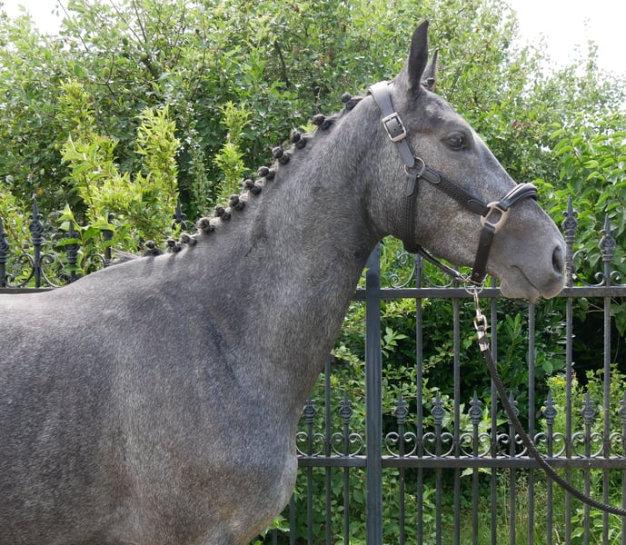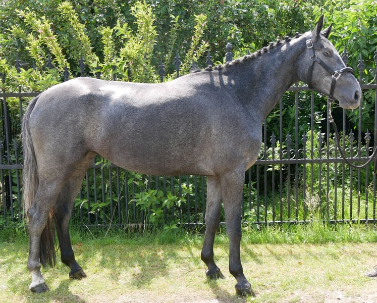 Talented and beautiful mare by Cornet Obolensky out of a Cartier v.d. Heffinck mother. She shows great reflexes and ability when free jumping. A veterinary check with X-rays is available. We currently have 6 more offspring by Cornet Obolensky (all from 2022). You are welcome to come and see the horses daily from 8 AM to 6 PM. Phone and WhatsApp: 0176 62495567.