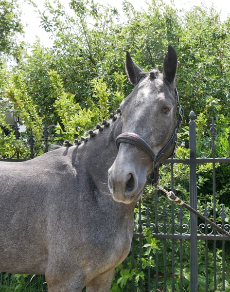 Nome: Cordina Età: nata nel 2022 Sesso: Fattrice Altezza: circa 158 cm Discendenza: Cornet Obolensky x Cartier v. d Heffink Livello di addestramento: montata Questa bellissima fattrice Westfalian è un vero sogno! Cordina è molto tranquilla sotto sella. È un tesoro da maneggiare, attenta e curiosa. Quando salta liberamente, è sempre motivata, ha ottimi riflessi e salta con molta visione e abilità. Non dimenticate di guardare i suoi video! Possiede un'AKU con radiografie senza referti! Se siete interessati, contattateci al numero: Telefono e WhatsApp 0176 62495567