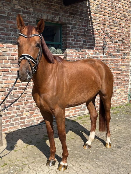 Diese Stute besticht durch ihre hervorragende Abstammung und ihrem guten Charakter. Unter dem Sattel ist sie leicht zu reiten, sehr aufmerksam, gelehrig und angenehm im Umgang. Ihre drei Grundgangarten sind lebhaft, rhythmisch und harmonisch - die perfekte Basis für ihre weitere Ausbildung. Die Stute beeindruckt uns täglich durch ihr wunderbares Temperament und ihre ausgezeichnete Rittigkeit. Mit ihrer hervorragenden Selbsthaltung und den drei sehr guten Grundgangarten ist sie für die kommende Turniersaison bestens gerüstet. Selbstverständlich ist sie schmiede- und verladefromm! Ihre Mutter war im Dressursport bis Klasse M erfolgreich, der Vater wird zurzeit von Isabel Werth im Grand Prix vorgestellt.
