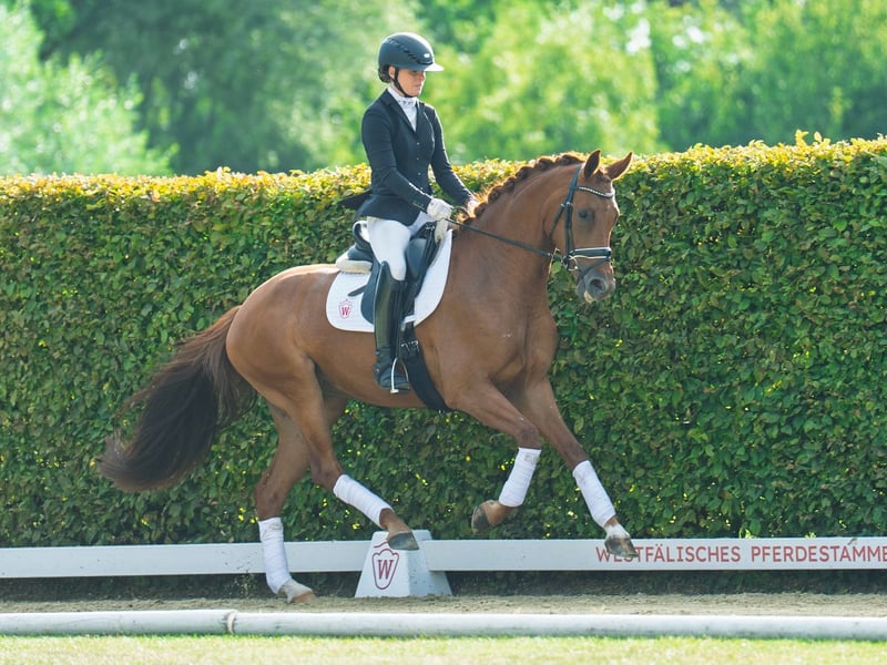 Mit dieser Tochter des La Vie präsentiert sich ein hochinteressantes Nachwuchspferd aus der Zuchtstätte Welling. Schonend angeritten, wartet dieser Rohdiamant darauf weiter geschliffen zu werden. La Rouge W ist ein Ausbildungspferd mit vielen Möglichkeiten. 1. Generation gekörte Hengste: Von Und Zu v. Vitalis (DR PSG erfolgr.) 2. Generation gekörte Hengste: Bonso v. Bon Coeur (DR M erfolgr.) Sportpferde: Herr von Heine v. Heinrich Heine (DR S erfolgr.) Stutenstamm gekörte Hengste: u.a. Excaléro v. Ex Libris, Landstern v. Landadel, Pidgley v. Pilox Sportpferde: Escapado v. Ex Libris (DR int. Grand Prix erfolgr./Carl Hester/GBR), Lifetime 14 v. Londontime (DR Grand Prix erfolgr.), Moms the Word v. Romanov (SPR int. 1,40 m erfolgr.), Lilly v. Lauries Crusador xx (SPR 1,40 m erfolgr.), Lucky Luke v. Landadel (DR S erfolgr.), Der Diamant 2 v. Derwisch (DR M erfolgr.), Gran Chacco 5 v. Grand Cru (SPR 1,30 m erfolgr.), Aloubetto v. Alido (DR M erfolgr.) Mutter: Flori ZL: 12/14
