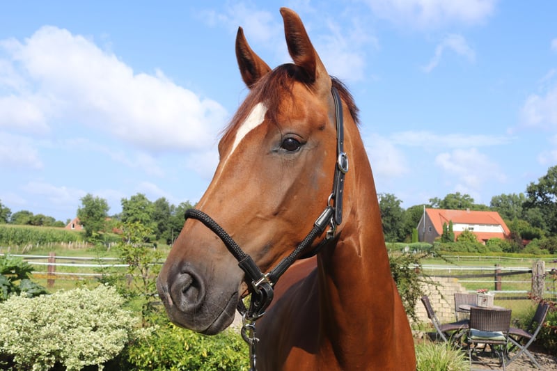 Wij verkopen onze zelfgefokte merrie Sunny, afstammend van Sir Donnerhall x Belissimo M x Rosenkavalier. Ze is bij ons geboren en is opgegroeid in een kudde met een gelijkwaardige merrie en twee oudere merries. Haar moeder, de Verb.Pr.St. Bounty, staat bij ons en kan bezichtigd worden. Sunny is sinds kort onder het zadel, maar vanwege bevindingen is de merrie ver onder de waarde en alleen beperkt als rijpaard te verkopen (deze zijn niet genetisch bepaald). Daarom kan ze ook als fokmerrie in overweging worden genomen. Bij interesse kunt u gerust telefonisch of via WhatsApp contact opnemen op 0151-68827188.