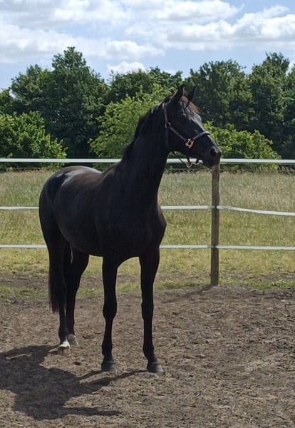 **Verkaufsanzeige: Wunderschöne Westfalen-Stute zu verkaufen** Zum Verkauf steht unsere talentierte Westfalen-Stute, geboren im Jahr 2021. Die Stute haben wir selbst gezüchtet und kommt entsprechend aus Züchterhand. Diese elegante Rappstute hat ein Stockmaß von 168 cm und überzeugt durch ihre ansprechende Statur und ihr harmonisches Erscheinungsbild. Die Stute ist dressurgezogen, hat 3 gute GGA und hat bereits in ein paar Turniere reinschnuppern können. Sie ist sehr lernwillig, brav im Umgang und hat einen ausgezeichneten Charakter, der sie zu einer idealen Partnerin für ambitionierte Reiter macht und auch ideal für Amateure. Ebenso zeigt sie auch einen sehr guten Sprung, weshalb wir sie als ein tolles Allrounder Pferd in liebevolle Hände abgeben möchten. Sie ist gut sozialisiert, kennt den Umgang mit anderen Pferden und ist sowohl im Stall als auch beim Training unkompliziert, was sie zu einem vielversprechenden Nachwuchs-Pferd macht. Sie kennt Anhängerfahren und Hufschmied. Ein aktueller TÜV inkl. Rücken liegt vor. Bei Interesse oder für weitere Informationen stehe ich Ihnen gerne zur Verfügung. Lassen Sie sich diese Gelegenheit nicht entgehen, eine talentierte Stute in Ihre Familie aufzunehmen!
