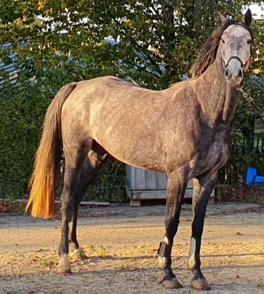 Questa splendida cavalla impressiona sia per il suo pedigree che per il suo talento naturale. La sua qualità di movimento è eccellente, combinata con capacità, elasticità e un grande slancio, rendendola un cavallo sportivo ideale. Fino all'inizio dei quattro anni, ha potuto svilupparsi serenamente. Ora è sotto la sella da tre mesi. A livello caratteriale, è molto affettuosa e sensibile. Compatibile con altri cavalli, priva di eczema e con il certificato di riproduzione senza problemi prima dell'addestramento! Un diamante grezzo nelle mani di chi sa valorizzarla. Altri video su richiesta.