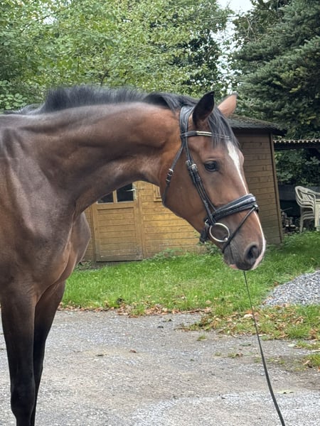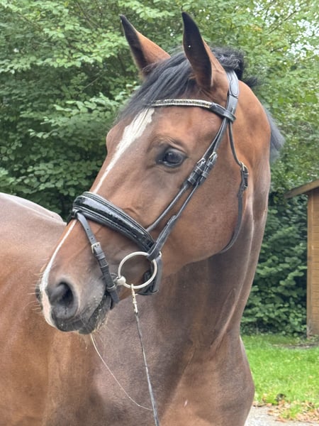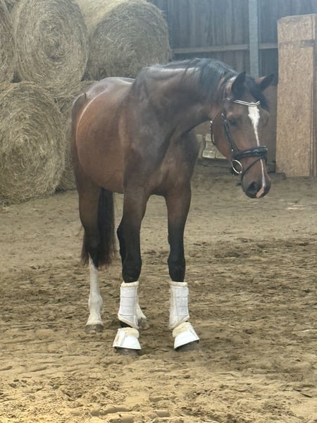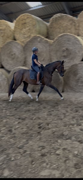 3-year-old mare by Ellis x Londontime – Promising young prospect with potential This striking 3-year-old mare, bred from our own stock, impresses with three above-average, large-scale basic gaits and a very good work ethic. Elsa, with a current height of 16.1 hh, has been gently backed and consistently shows motivation, nerves of steel, and a clear head under saddle. She delights with a spacious, rhythmical walk, a lively, active trot, and a well-balanced, uphill canter. Particularly noteworthy are her lightness of foot and refined contact – Elsa is easy to handle and makes it simple for the rider to develop her correctly. With her impressive quality and modern appearance, she possesses everything needed for a successful career in dressage. Elsa has been regularly presented to the farrier, dental checked and treated, and dewormed appropriately. She is also loading well and shows a very uncomplicated demeanor in daily handling. Anyone looking for a promising young horse for a future in top-level sport will find what they seek here.