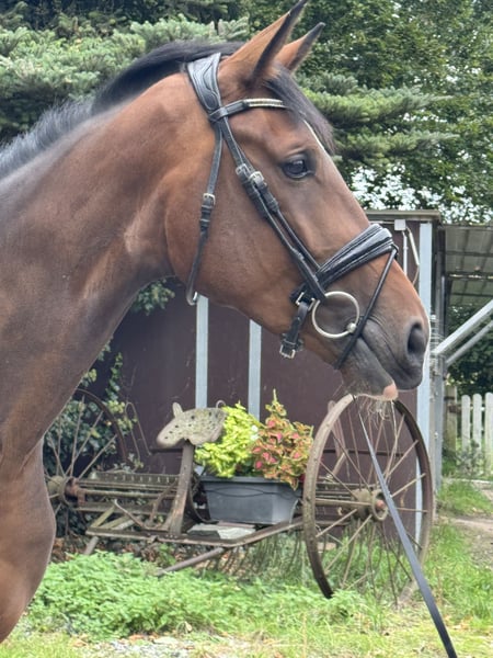 Cavalla mare di 3 anni da Ellis x Londontime – promessa di talento con potenziale Questa mare di 3 anni, di provenienza da allevamento propio, si distingue per le sue tre andature di base sopra la media, ampie e ben sviluppate, e per un’attitudine al lavoro molto buona. Elsa, con un’altezza al garrese attuale di 1,70 m, è stata montata con delicatezza e si mostra sempre motivata, nervi saldi e mente lucida sotto il cavaliere. La sua andatura impressiona per il passo ampio, sicuro e ritmato, il trotto energico e fluido, e il galoppo ben bilanciato e con slancio, che sale bene in sella. Da sottolineare in modo particolare la sua leggerezza nel movimento e la finezza nell’assetto – Elsa è facile da condurre e permette al cavaliere di svilupparla correttamente. Con la sua qualità impressionante e il suo aspetto moderno, possiede tutte le caratteristiche necessarie per una carriera di successo nel dressage. Elsa viene regolarmente presentata al ferratore, controllata e trattata dal veterinario, ed è regolarmente dewormed. È inoltre molto tranquilla in fase di carico e si mostra molto semplice nell’uso quotidiano. Se si cerca un giovane cavallo con prospettive per il grande sport, questa è la scelta giusta.