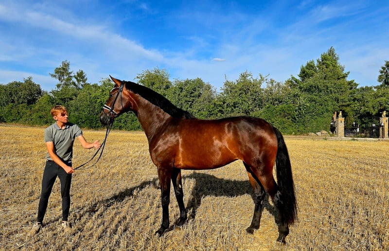 This tall, well-built 4-year-old Escolar mare impresses not only with her excellent movement quality but also with her superb rideability. She is easy to ride even for a female rider, and she is familiar with both arena and outdoor terrain. Very well-behaved in handling, she is accustomed to turnout, paddock, and lunging. She is also sound for farrier and loading. A recent good-quality X-ray report is available. She can be tested at any time in 97285 Röttingen. Please contact only by phone at: 0179 7002982 or 0151 17238135