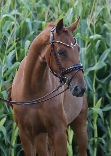 Schweren Herzens biete ich meine selbstgezogene 5-jährige Fuchsstute „Evangeline“ zum Verkauf an. Da ich aktuell keinen Reiter habe und selbst nicht reiten darf, suche ich für sie ein passendes, liebevolles Zuhause. Evangeline ist bei mir am Haus in kleiner Gruppe aufgewachsen und konnte sich in Ruhe entwickeln. Bereits früh zeigte sie ihr großes Talent. Sie wurde dreijährig schonend angeritten, anschließend wieder auf die Weide gestellt, um weiter zu reifen. Im vergangenen Sommer wurde sie erneut leicht gearbeitet. Mit einem Stockmaß von ca. 1,60 m ist sie kompakt gebaut und deckt Reiter bis etwa 1,75 m gut ab. Sie verfügt über drei gute bis sehr gute Grundgangarten sowie einen ansprechenden Sprung. Alle Basics sind vorhanden, sodass sie sich ideal weiter ausbilden lässt. Aufgrund ihrer Qualität sehe ich sie bei entsprechender Förderung durchaus im Bereich M/S-Dressur, mit weiterem Potenzial nach oben. Gesundheitlich ist sie bestens versorgt: • 3-jährig vollständig geröntgt (18 Standardaufnahmen inkl. Genick, Hals und Rücken) – ohne Befund • Regelmäßig beim Schmied • Geimpft und entwurmt Ich wünsche mir für Evangeline ein langfristiges, verantwortungsbewusstes Zuhause, in dem sie mit Pferdeverstand weiter gefördert und wertgeschätzt wird. Bei ernsthaftem Interesse gerne telefonisch melden (ab 14 Uhr).
