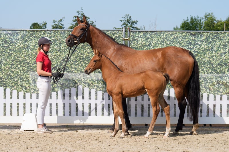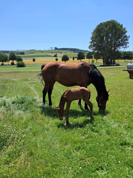 For sale is this promising 5-year-old breeding mare by Global Player. "Goldstück" is registered in the Stud Book I of the Westphalian Horse Breeding Association. She already has a foal at foot this year and was successfully bred last year through a single insemination. Her pedigree makes her particularly interesting for breeding, as her sire Global Player was the world champion of 6-year-old dressage horses in 2022. Due to an accident, "Goldstück" has developed carpal joint arthritis in her right front leg and is therefore not rideable. However, the remaining X-rays show no abnormalities. Aside from the mentioned arthritis, "Goldstück" is completely healthy. If you are interested or would like more information, please feel free to contact us! We look forward to your inquiry!