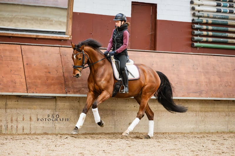 Suki is een dressuurpaard in de opbouwfase met prachtige bewegingen en drie uitstekende gangwerk- en dressuurkwaliteiten. Ze beschikt over veel go en kracht, is gevoelig en fijn aan de hulpen, maar altijd braaf en absoluut niet schrikachtig of oplettend. Ze is rijdbaar, zitcomfortabel en heeft de benodigde snelheid in haar bewegingen, ondanks haar veel schwung. Haar achterbeen is bijzonder te noemen. Suki heeft al ervaring op concoursen opgedaan en is geplaatst in de L- en M-dressuur. Ze is door haar fokker nog volledig onbelast en wacht op haar grote doorbraak in de ring; haar verdere opleiding zal zich zeker uitbetalen en veel plezier brengen. Bekijk haar en word verliefd! Een geldige keuring (TÜV) van 01/25 is aanwezig, inclusief hals, en Suki is vrij van EVCM.
