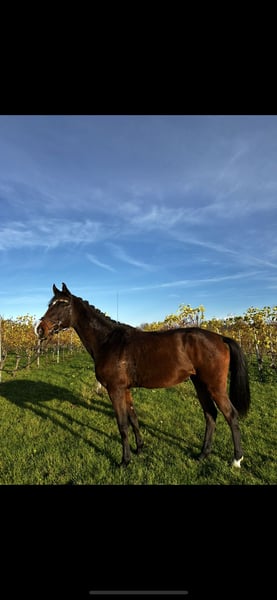 This beautiful 4-year-old Westphalian mare impresses with her modern show jumping pedigree and her balanced, charming personality. She was gently backed about 8 months ago following the training scale and has since consistently demonstrated motivation, ease, and eagerness to learn. Standing at 16.1 hh, she is ideal for a young girl or a beginner in show jumping who is looking for a reliable and easy-to-ride horse. She is very straightforward to handle both under saddle and when jumping, showing particular talent over fences—possessing natural scope, good technique, and caution. Her super friendly and affectionate nature, her calm demeanor, and her fine, quiet temperament make her a true sweetheart. She is brave and well-behaved both alone and in a group when hacking out and remains calm and confident in all situations. She has been in our care since she was six months old, always receiving attentive and careful upbringing. An honest, uncomplicated partner for her future sporting endeavors or simply for loving and cuddling! We wish her a wonderful home where she will be well cared for and regarded as a family member.