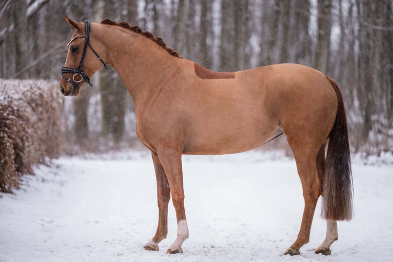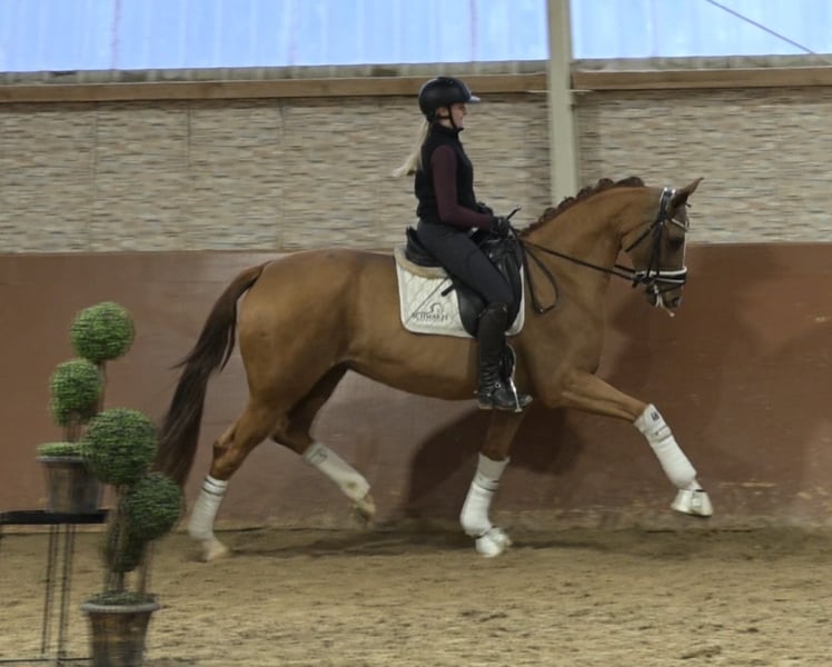 Dear Interested Parties, To schedule a test ride, please send me a WhatsApp message. For further questions, I am available via WhatsApp during the day, and you can reach me best by phone between 4 PM and 7 PM. I look forward to hearing from you. www.angelina-devittorio.de ⭐️Viva Venezia ⭐️ Age: 5 years (2021) Height: approximately 16.1 hh Pedigree: Vivaldos x Dimension Training level: well-ridden X-ray: good radiographs available For sale is a stunning chestnut mare, daughter of the top sire Vivaldos. She has three very good basic gaits and is well-ridden. Still lightly trained and educated, she always wants to please and do everything right. A true gem of exceptional quality is developing here – an excellent schoolmaster with potential for upper-level dressage. This is a fantastic young horse with great potential. Good radiographs are already available. She is very well-behaved and uncomplicated in handling, very trusting, and also very alert and focused when ridden. Still lightly ridden, she needs further basic training (similar to a 3-year-old horse), which is why she is being sold at a significantly reduced price. Of course, experience with ridden horses is required due to her training level, but she is absolutely suitable for amateurs. She shows no bad habits and always strives to do her best. Thanks to her excellent pedigree, she is also highly interesting for breeding. A highly talented young horse at a very attractive price! ⚜️ Phone: 0171-3438949 ⚜️ Email: a.devittorio@web.de ⚜️ https://www.ehorses.de/angelinadevittorio Facebook and Instagram: Angelina De Vittorio