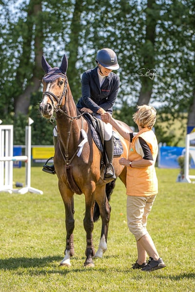 Send Westphalian Mare – Perfect for Girls or Amateur Riders! For sale is a beautiful dark bay Westphalian mare, born in 2020. Standing at 16.1 hh, she combines a practical size with plenty of charm. She already shows significant talent and motivation in show jumping, currently competed up to novice (L) level with good results. This young lady impresses with her elegant appearance, eagerness to learn, and friendly nature. She is well-trained and ready to take her next steps in the show jumping sport. Very well-behaved in handling and during daily dressage work. No quirks or fears. Please feel free to contact me for more information or to arrange a viewing.