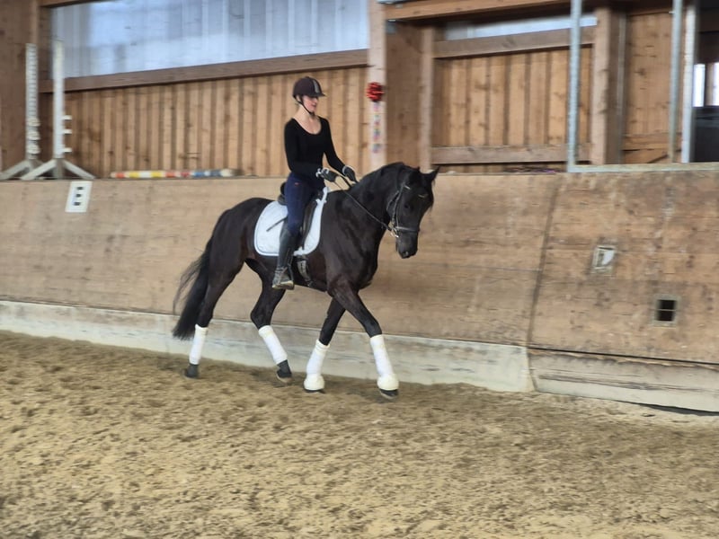 Wunderschöne Rappstute mit genügend GO für den großen Dressursport. Sie ist dem Alter entsprechend ausgebildet und will einfach nur gefallen. Dressurpferdeprüfungen wird sie mit ihren gewaltigen Bewegungen leicht für sich entscheiden können...Rö inclusive Rücken liegen vor und eine Ankaufsuntersuchung.