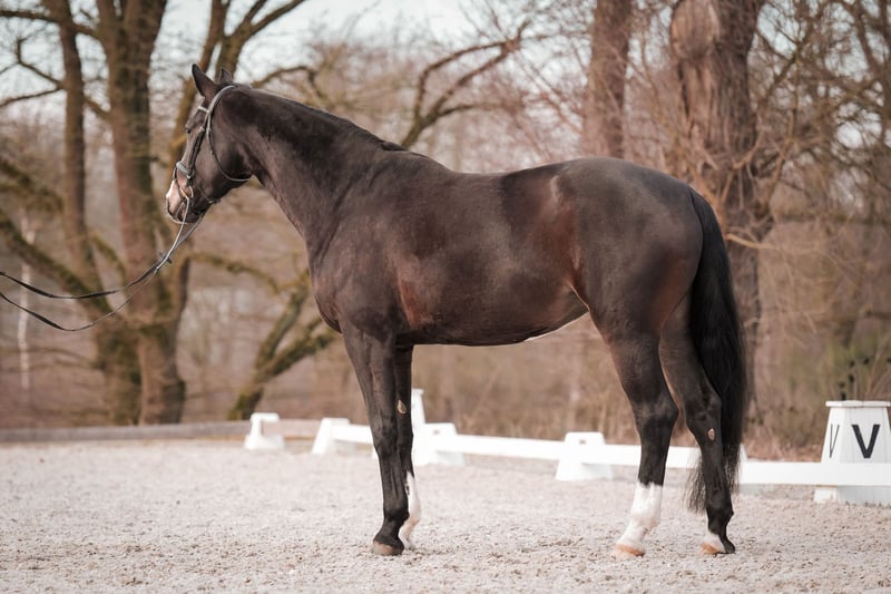 Ellis est une grande jument bay très calme et équilibrée. Elle a été monté en fin de quatrième année et se trouve actuellement au niveau Dressage A, avec une bonne expérience. Elle connaît déjà le galop extérieur, le KK, ainsi que le départ au trot enlevé, etc. Elle possède un très bon certificat vétérinaire. Vente directe par l’éleveur. Pour plus d’informations, merci de contacter par téléphone ou WhatsApp au 0170 28 46 173.
