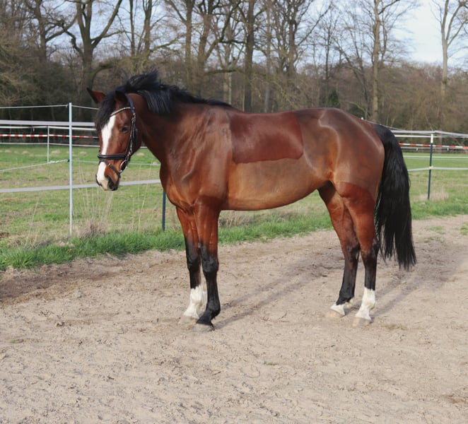 Schweren Herzens verkaufe ich meine 6-jährige Stute Candy. Candy stammt ab von Contendrix x Lissabon und hat ein Stockmaß von 1,60 m. Sie ist seit dem Fohlenalter in meinem Besitz und wurde von mir selbst schonend angeritten und kontinuierlich ausgebildet. Im Umgang zeigt sich Candy stets brav, freundlich und unkompliziert. Sie ist schmiedefromm und lässt sich problemlos händeln. Auch unter dem Sattel überzeugt sie mit ihrer Rittigkeit, ihrem angenehmen Charakter und ihrer Zuverlässigkeit. Candy ist aktuell bis Springen auf A-Niveau ausgebildet. Sie konnte bereits Turniererfahrung sammeln, präsentiert sich dort sehr sicher, nervenstark und abgeklärt und konnte sich im Springen auch schon platzieren. Sie ist gesund, regelmäßig entwurmt und geimpft. Candy ist eine ideale Partnerin für einen ambitionierten Amateurreiter, der sich gemeinsam mit ihr weiterentwickeln und im Sport wachsen möchte. Bei Interesse oder Fragen gerne melden.