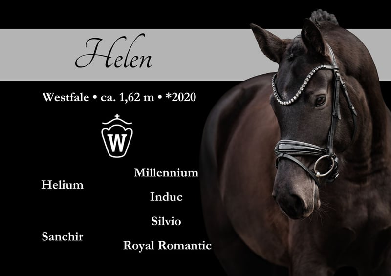 Dear Interested Parties, To schedule a test ride, please send me a WhatsApp message. For further questions, I am available during the day via WhatsApp, and you can reach me best by phone between 4 PM and 7 PM. I look forward to hearing from you. ⭐️Helen⭐️ Age: 5 years (2020) Height: approximately 16.1 hh Pedigree: Helium x Silvio Training level: Placed in Dressage Horse Class A Ultrasound: Good X-ray images available Helen is a highly talented young dressage mare with a stunning appearance and a very elegant presence. She has already demonstrated her three good basic gaits and is placed in Dressage Horse Class A. She has a good canter, an excellent walk, and a superb trot with strong mechanics. Helen is a very sweet, compact mare who wants to do everything right and remains very calm under pressure. She is suitable for every amateur rider from A-level upwards. In handling, she is consistently reliable — she is familiar with hacks and very straightforward in all situations. A true dream horse with excellent quality, top character, and great potential for training. Thanks to her quality and calm demeanor, she is an ideal training horse for sport and leisure, with much more potential for the future. Sold with a heavy heart by the breeder due to personal circumstances. ⚜️ Phone: 0171-3438949 ⚜️ Email: a.devittorio@web.de ⚜️ https://www.ehorses.de/angelinadevittorio ⚜️ Facebook and Instagram: Angelina De Vittorio ⚜️ Videos via WhatsApp: 0049 171 3438949