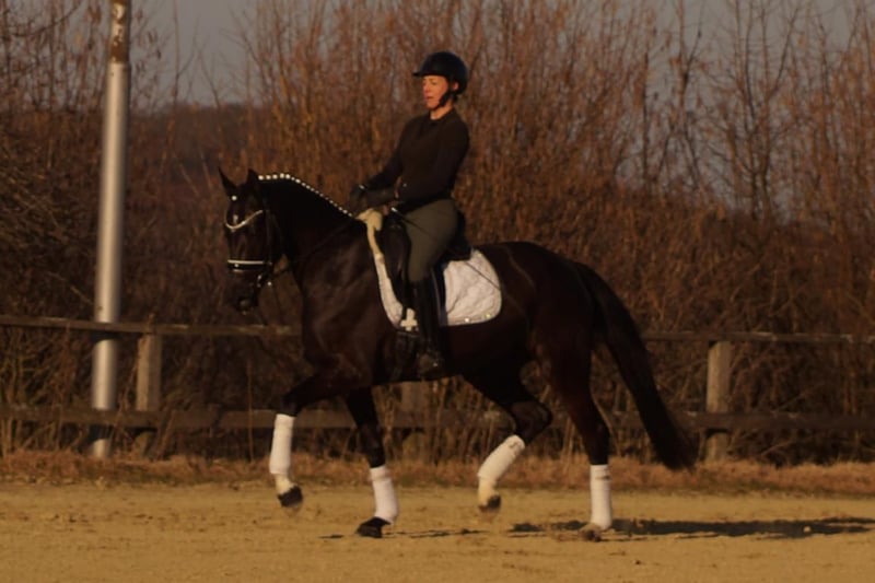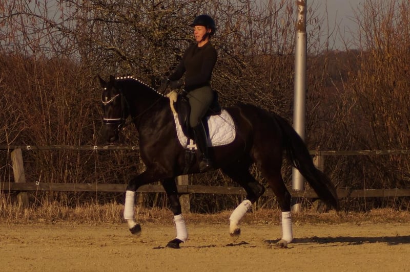 Samira ist eine extravagante Dame mit einem souveränen, liebenswerten Charakter. Sie bringt nichts aus der Fassung, versucht immer 100% zu gefallen und ist sehr leicht zu bedienen. Sie verfügt über drei großangelegte Bewegungen mit sehr viel Potential. Vor Allem der Galopp erinnert stark an ihren Vater, den Bundeschampion Secret. Über die Mutterlinie erhält sie durch das De Niro Blut die perfekte Winklung der Hinterhand mit viel Hebel und Kraftentwicklung. Ebenso führt der Mutterstamm einen guten Schuss Blut, wodurch Samira sehr leichtrittig ist. Neben der Genetik begünstigt natürlich der nahezu perfekte Körperbau die Rittigkeit und Balance. Insgesamt wäre Samira ein ideales Umsteigerpferd. Mit ihrer Leichtigkeit den Rahmen zu erweitern und zu schließen und die Gelassenheit Fehler zu verzeihen passen ideal zu einem Reiter, der gerne mit leichten Hilfen reiten möchte.