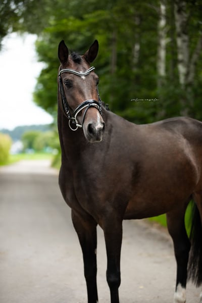 Elegante Westfale-Stute, geb. 2020, sucht ihren Dressurdeckel. Diese wunderschöne Dunkelbraune Westfale-Stute beeindruckt durch ihre elegante Erscheinung und ihr entspanntes Temperament. Mit einem Stockmaß von 165 cm bringt sie genügend Größe mit. Abgerundet wird ihr Typ durch einen kleinen Bauchfleck, der sie zu was ganz besonderem macht. Sie ist eine leicht zu reitende und vielseitige Dressurpartnerin, die durch ihre Lernbereitschaft und ihre positive Arbeitseinstellung besticht. Ihre solide Ausbildung bildet die perfekte Basis für eine erfolgreiche Zukunft im Dressurviereck. Auch Geländeausritte in der Gruppe oder alleine meistert Sie mit Bravour. Ist bei uns in der Herde groß geworden, 4jährig angeritten und hatte dann nochmals, aus Zeitgründen, eine Pause. Daher auch noch der relativ geringe Ausbildungsstand für ihr Alter. Wenn Sie auf der Suche nach einer talentierten und charmanten Dressurstute sind, die noch viel Potenzial mitbringt, könnte diese Lady genau die Richtige für Sie sein. Für weitere Informationen und eine Besichtigung stehe ich gerne ab 17:00h telefonisch zur Verfügung. Um dem Reittourismus entgegen zu wirken, erlauben wir uns eine Pauschale von 50,- zu erheben, welche bei Kaufabschluss angerechnet wird.