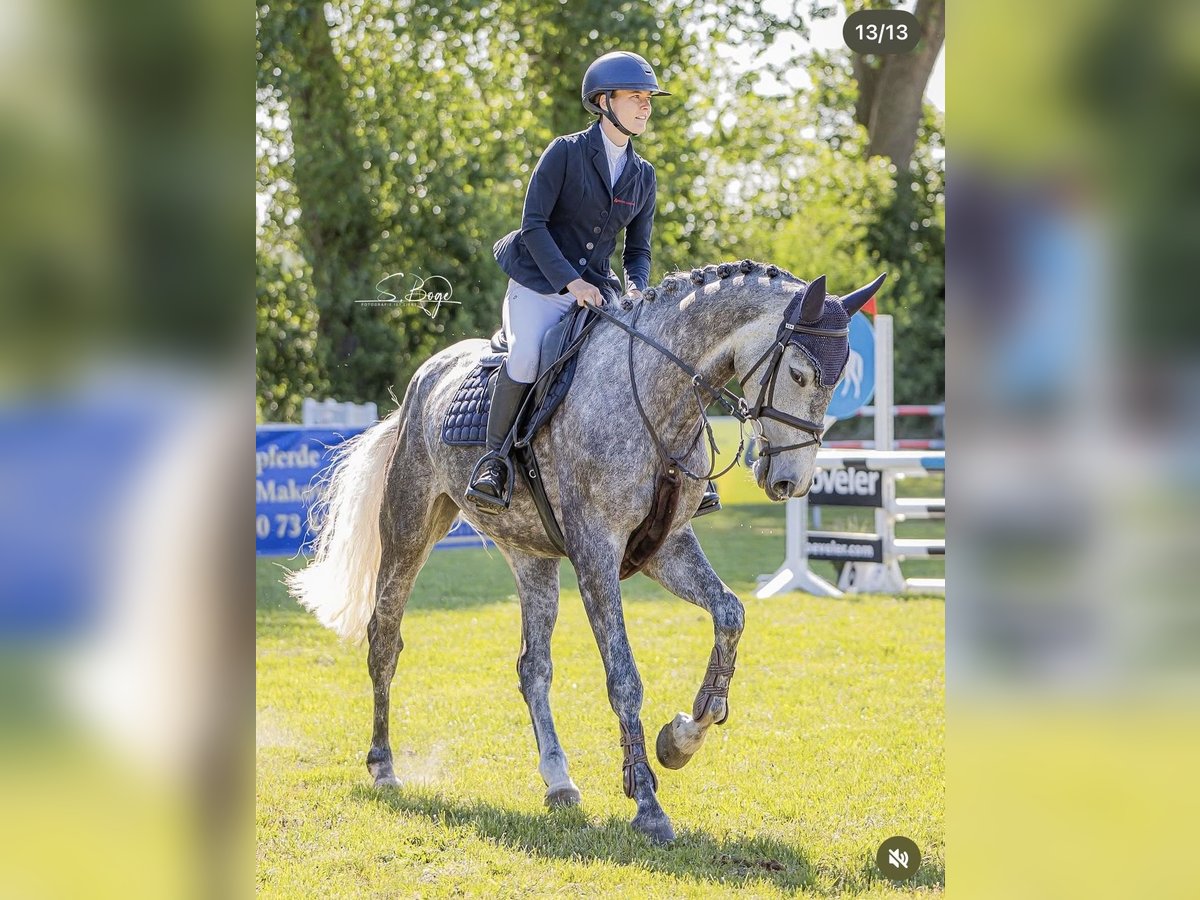 Elegante Westfale-Stute, geb. 2020, sucht neuen Besitzer Diese wunderschöne Schimmelstute ist ein echtes Highlight für jeden Springreiter. Mit einem Stockmaß von 168 cm bietet sie die perfekte Größe für ambitionierte Reiter, die Wert auf Qualität und Leistungsbereitschaft legen. Unsere ‘Mathilda’ wie sie bei uns genannt wird, besticht durch ihre elegante Erscheinung, ihre ausgeglichene Natur und ihre gute Grundausbildung. Sie wurde von einem 15 Jährigen Mädchen angeritten und ausgebildet. War dabei immer zu 100% brav, verlässlich und ehrlich. Sie ist aktuell bis Springpferde L gelaufen und platziert. Läuft Zuhause auch schon anspruchsvollerer Parcours und zeigt dabei viel Vorsicht. Absolut unkompliziert im Umgang, ob im Gelände, beim Schmied oder beim Transport. Wir können uns Mathilda sowohl als Mädchenpferd, Children/Juniorenpferd aber auch für den ambitionierten Amateur der später auch schwere Springen bestreiten möchte vorstellen. Diese junge Stute hat alle Voraussetzungen, um sich in der Springpferdeprüfung zu beweisen und eine erfolgreiche Zukunft im Springsport zu starten. Sie ist gesund, regelmäßig geimpft und frei von bekannten Krankheiten. Bei Interesse freuen wir uns auf Ihre Kontaktaufnahme, um weitere Details zu besprechen und einen Besichtigungstermin zu vereinbaren.