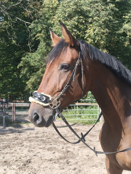 Diese hübsche, 7-jährige Stute mit ansprechendem Exterieur sucht ein liebevolles, erfahrenes Zuhause. Sie hat in der Vergangenheit leider auch schon nicht so schöne Erfahrungen gemacht und benötigt daher Menschen, die ihr mit Ruhe, Geduld und viel Herz begegnen. Amanda wurde bei uns schonend angeritten und zeigt sich unter dem Reiter brav und kooperativ. Ins Gelände geht sie artig und lässt sich dabei problemlos gebisslos reiten. Mit Gebiss hat sie derzeit noch deutliche Schwierigkeiten, sodass hier ein einfühlsamer, erfahrener Reiter gefragt ist, der ihr Zeit und Vertrauen schenkt. Oder man lässt sie damit einfach in Ruhe. Charakterlich ist sie eine sehr süße, verschmuste Maus, die die Nähe zum Menschen sucht. Im Umgang zeigt sie sich grundsätzlich unkompliziert und verträglich mit anderen Pferden. Aktuell steht sie in der Box mit täglichem Paddockgang, würde sich aber auch im Offenstall wohlfühlen. Auch als Zuchtstute könnte sie durch ihre Abstammung interessant sein. Wir suchen für sie Menschen, die Freude daran haben, einem Pferd mit Vergangenheit eine faire Chance zu geben und die Geduld mitbringen, gemeinsam Schritt für Schritt Vertrauen aufzubauen. Zu erwähnen ist, dass Amanda einen leichten Beckenschiefstand hat. Mit entsprechendem Training und Muskelaufbau wird sich das bessern. Aus oben genannten Gründen ist dieses tolle Pferd weit unter Wert in beste Hände abzugeben. „Noch mehr Fotos, Videos und kleine Einblicke in den Alltag unserer Pferde gibt’s auf Instagram: [maresi_lange]. Schauen Sie gern vorbei und lernen Sie unsere Vierbeiner schon vorab ein bisschen kennen. You can find more photos, videos and little insights into the everyday life of our horses on Instagram: [maresi_lange]. Feel free to take a look and get to know our horses a bit better in advance.“ Die Beschreibung des Pferdes beruht auf subjektiven Eindrücken und Erfahrungen unsererseits und ist keine Beschaffenheitsvereinbarung und Zusicherung von Eigenschaften. Probereiten erfolgt auf eigene Gefahr. Für das Vorstellen/ Probereiten des Pferdes erlauben wir uns eine Aufwandsentschädigung in Höhe von 30 Euro zu berechnen. Diese wird natürlich bei Kauf des Pferdes verrechnet.