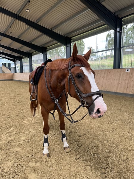 Are you looking for a young horse with a lot of potential? We are selling our home-bred Westphalian mare by Cordynox out of a mother by It’s me du Mesnil. Claire stands at 1.73m tall. Her sport name is: Clair de lune 26. Claire was born on May 15, 2020, and we lunged her at the age of 3 and presented her at free jumping competitions. Here, she was able to attract attention with a lot of ability and great technique, placing 6th in the free jumping final in Münster with top scores (8.9 & 8.5). At her mare show for registration, Claire received the Westphalian Association Premium at the age of 3. Her striking blaze and four white legs make her a real eye-catcher. At the age of 4, we started Claire gently under saddle. From the beginning, she showed herself to be very rideable, sensitive, and motivated. She can be wonderfully sat and gives the rider a fantastic riding feeling. In the spring of this year, we presented her at competitions for the first time. At her first show, she was able to place in a jumping horse test of class A* with a score of 7.7 among a strong field of competitors. Numerous other placements followed at the subsequent competitions. This includes a great 2nd place in a jumping horse test of class A** with a score of 8.1! By now, she has also achieved her first placements in jumping horse class L. Claire always shows herself to be attentive, light-footed, and careful in the course. A horse to name, ride off, and collect ribbons. Claire is not a beginner's horse, and we wish for experienced and supportive hands for her. A veterinary check is not currently available but can certainly be arranged. Claire is loading and farrier friendly. In the field, she shows herself to be well-behaved and unflappable. She is fully shod. https://www.horsetelex.de/horses/pedigree/2327889/clair-de-lune If you are interested and would like more information, please feel free to contact us by phone or via WhatsApp. Of course, a trial ride can also be arranged. Best regards, David Brochhaus & Kathrin Tinscher Sport Horse Breeding Olper Höhe Oberbersten 1 51515 Kürten