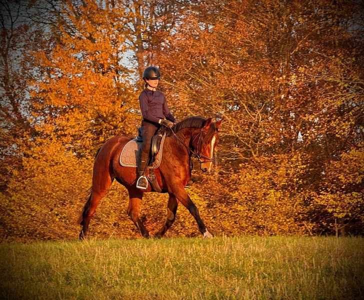Zum Verkauf steht eine in 2019 mit ca. 160cm Stockmaß geborene Westfalen Stute von Diamond Deluxe. "Die Eine oder Keine" kurz "Dieda" kam als Absetzer auf unseren Betrieb und wurde 4-jährig schonend angeritten. Mit 3 schönen GGA besticht sie durch ihre Unerschrockenheit in ihrer braunen Jacke sowohl im Viereck, als auch am Sprung. Durch ihre sensible Art ist sie für unseren Schulbetrieb mit stetig wechselnden Reitern leider nicht geeignet und sucht nun ihren Menschen, wo sie an erster Stelle steht. Im täglichen Umgang zeigt sie sich sehr Menschenbezogen und freut sich über jede Art der Beschäftigung. Derzeit steht sie im Herdenverband mit Stuten und Wallachen im Offenstall. Dieda kennt 24h Weide,- als auch Boxenhaltung.