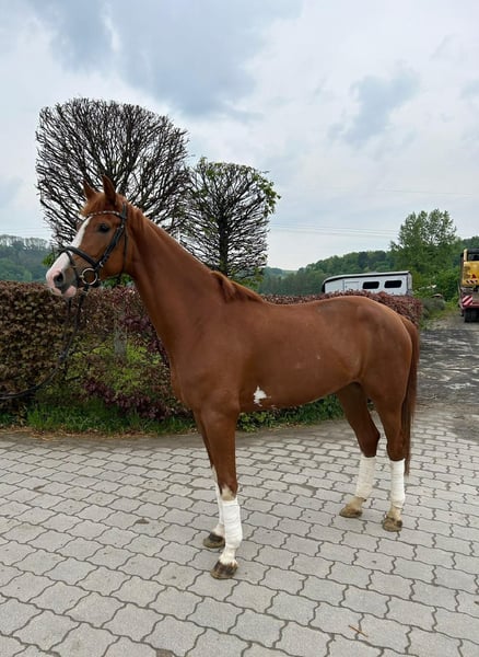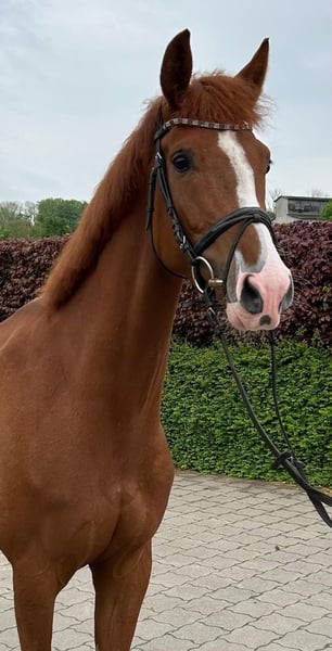 Aufgrund von Einstellung der Zucht verkaufe ich meine selbstgezogene bunte, auffällig schöne Stute. Sie durfte ihre Kindheit sehr lange bei mir genießen und wurde aus Zeitmangel und zu vieler Nachwuchspferde erst Ende 2024 angeritten. Sie hatte dann bis 11/2025 eine sehr lange Auszeit nach meinem schweren Skiunfall im Frühjahr 2025. Ich (fast 60 J.) reite sie jetzt wieder. Sie ist aber nur angeritten und müsste vom guten Reiter/-in weiter gefördert werden. Ich würde die schöne Zoom-Tochter gerne in der Zucht sehen. Sie ist mittlerweile meine 3. Generation. Die Mutter Frances von Fleury x Damenstolz) hat in Oldenburg sehr ausdrucksstarke Nachkommen und die "Oma" Desert Sun (Damenstolz x Goldjunge / Grenadier) ist mit 30 Jahren immer noch top fit im Gelände gemütlich unterwegs . Die alt bewährte D-Linie in der Zucht zahlt sich wirklich aus. Die Zoom-Tochter würde die moderne Zucht mit der "harten" Zucht sehr gut kombinieren. Sie ist sehr menschenbezogen, verschmust, artig im Umgang und nur selten etwas "stutig". Gynäkologische Berichte und Röntgenbilder liegen in der Pferdeklinik Telgte vor.