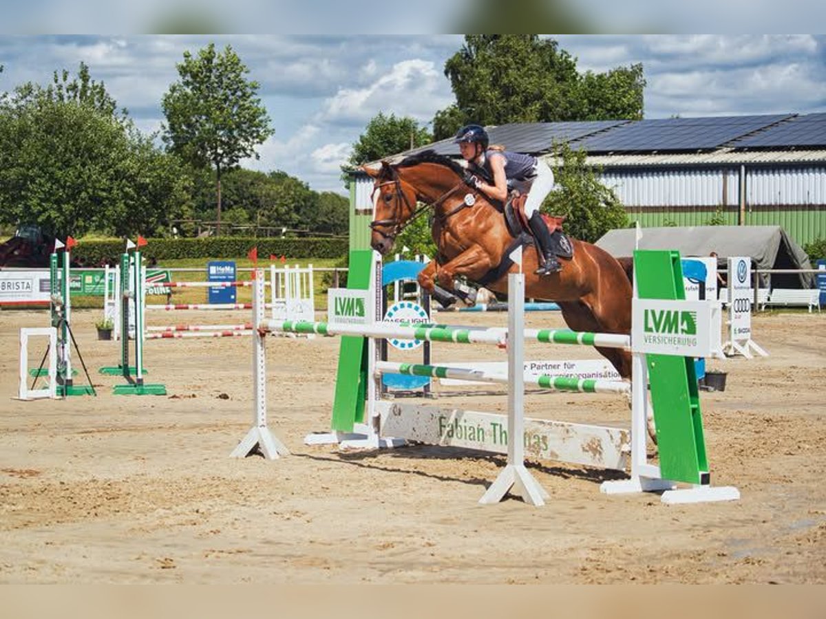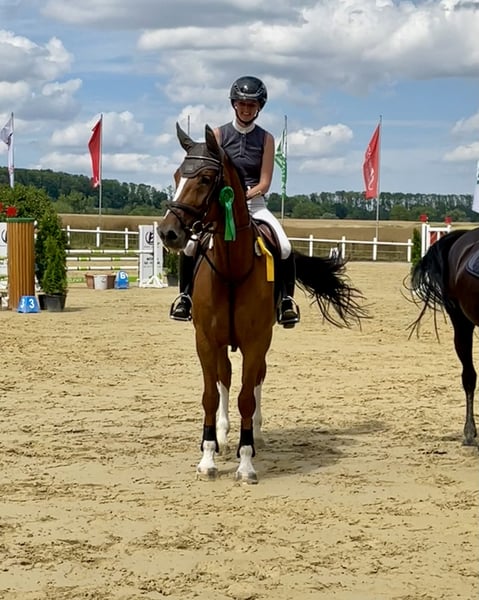 We are selling our 7-year-old Westphalian mare by Diathago. - Very talented over fences - Placed in L-level show jumping - Competed in M* show jumping - Regularly dewormed and vaccinated - Shoeless (runs barefoot) - Directly from the breeder - 16.4 hh (hands) at the withers She will only be placed in a 5-star home (ample turnout (!), horse companionship, experienced and caring hands).