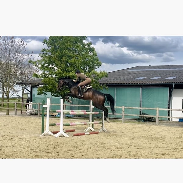 Zum Verkauf steht eine 2018 geborene, schwarzbraune Dressurstute von Zoom, die sowohl im Dressurviereck als auch beim Springen überzeugt. Die Stute ist ca. 1,75 m groß und verfügt über drei herausragende Grundgangarten mit viel Schwung, Raumgriff und natürlicher Balance. Sie ist L-sicher ausgebildet und zeigt sich beginnend in M-Lektionen talentiert und motiviert. Auch sportlich konnte sie bereits überzeugen: • A-Dressur gewonnen mit 7,8 • Stil-A platziert mit 8,4 Neben ihrer Dressurveranlagung zeigt sie sich freudig, aufmerksam und talentiert beim Springen. Sie springt mit Übersicht, guter Technik und ausreichend Vermögen, wodurch sie sich auch ideal als Vielseitigkeits- oder Allroundpferd anbietet. Die Stute ist sehr klug und lernwillig, versteht neue Lektionen schnell und bringt ein enormes Bewegungspotenzial mit. Sie wünscht sich einen erfahrenen Reiter, der ihre Qualität weiter fördert und ausbalanciert einsetzen kann. Im Training L Parcours bereits mit Übersicht bewältigt. Kleinere tierärztliche Befunde liegen vor, schränken die sportliche Eignung nicht ein. Ein spannendes Nachwuchspferd für ambitionierte Reiter, die ein hochwertiges Dressurpferd mit zusätzlicher Springqualität suchen.