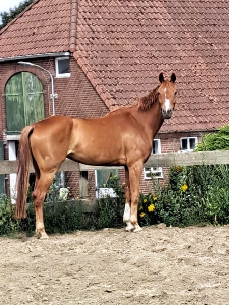Baroness zu verkaufen. Elegante 6-jährige Westfälische Dressurpferdestute. Tragend von dem sensationellen Daan G., der im vergangenen Winter als teuerster junger Hengst aller Zeiten von Schokmöhle und Helgstrand für 2.000.000 € gekauft wurde. Baroness verfügt über ein schönes Exterieur, eine Stockmaß von stolzen 1,74 Metern und großzügige, elegante Bewegungen. Sie ist gut angeritten und ein vielversprechendes Dressurpferd. Ein Nachkomme von Daan G. aus seinem ersten Jahr ist definitiv sehr interessant. Baroness hat ein hochwertiges Dressur-Pedigree mit Größen wie Benicio, Sir Donnerhall und Fürst Heinrich.