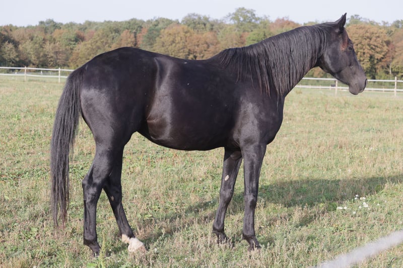 Amira is a lovely young black broodmare with a lot of elegance and three good gaits. She has an excellent temperament. She lives in a group outdoors and gets along well with everyone—there is no malice in this mare. She is easy to handle and undergoes ultrasound examinations without issues. She is saddle-trained and loads well. She is a Westphalian and holds a Selle Français label. She is located in France, near Fontainebleau, 77. This year, 2025, she foaled a very chic foal sired by the stallion Emilion VDL. The foal is very elegant, well-built, and moves nicely (also available for sale). Regarding her genetics: She is the offspring of the lesser-known stallion Adonis and Sterntaler, a mare by the triple world champion Sezuan. She comes from an exceptional lineage, one of the richest in Germany in terms of stallions. Sterntaler is half-sister to the stallions Davos, Dancing Diamond, and Dankeschön—all of whom have competed successfully at St. Georges level. Amira's second dam, Fantasie, has produced six male offspring, all high-level competition horses, including three stallions! Furthermore, Fantasie is the full sister to the stallions Farewell I, II, III, and IV, all sired by Fidermark. The most famous among them is Farewell III, who competed successfully in Grand Prix. Within this pedigree, you find the following stallions: - In your heart von Bellin (by Dankeschön, from the same lineage) - Adonis - Rosenquarz - Licosto - Florentianer - Apollon - Imperial MT - Baumann's Maybach - Salitos In Grand Prix: - Enigma Farewell III More videos and photos available upon request. Contact: marine.baissus@gmail.com WhatsApp: 0647177001 https://www.elevagedesbaisses-chevauxdedressage.fr
