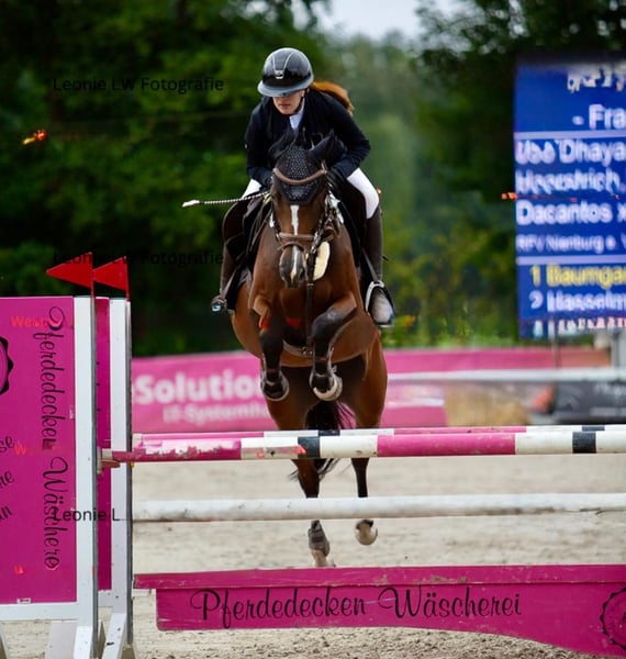 Rasse: Warmblut Geschlecht: Stute Alter: 8 Jahre Stockmaß: ca. 167 cm Disziplin: Springen (bis L platziert), A-Dressur gelaufen Diese bildschöne 8-jährige Stute überzeugt mit Ausstrahlung und einem ehrlichen Charakter. Im Parcours zeigt sie Vermögen, Übersicht und eine vorbildliche Einstellung – sie springt immer, kennt ihren Job und ihre Leidenschaft gilt eindeutig dem Springen. Mit ihrem konstanten Sprung, ihrer Zuverlässigkeit und ihrem guten Auge ist sie der ideale Partner für Amateure und Umsteiger, die Wert auf Sicherheit und Freude am Reiten legen. Im täglichen Umgang ist sie immer artig, brav und unkompliziert. Auch im Gelände zeigt sie sich gelassen und zuverlässig, geht alleine oder in der Gruppe, springt Geländehindernisse und geht ins Wasser. In der Dressur wurde sie bislang nicht gezielt gefördert. Ihr freundliches Wesen und ihre Leistungsbereitschaft machen sie zu einem vielseitigen Pferd, das sowohl im Turniersport als auch im Freizeitbereich überzeugt. Bitte kontaktieren Sie mich gerne per WhatsApp oder telefonisch. Bei Interesse versende ich sehr gerne Videos.