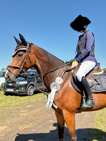 Breed: Warmblood Gender: Mare Age: 8 years Height: approximately 16.1 hh Discipline: Show jumping (placed up to L), competed in A-Dressage This stunning 8-year-old mare impresses with her presence and honest character. In the jumping arena, she demonstrates talent, composure, and an exemplary attitude – she always gives her best, knows her job well, and her passion clearly lies in show jumping. With her consistent scope, reliability, and good eye, she is the ideal partner for amateurs and transitioning riders who value safety and enjoyment in riding. In daily handling, she is always well-behaved, calm, and uncomplicated. She also remains relaxed and dependable in the field, whether ridden alone or in a group, jumping cross-country obstacles, or crossing water. She has not been specifically trained in dressage so far. Her friendly nature and willingness to perform make her a versatile horse, suitable for both competition and leisure riding. Please feel free to contact me via WhatsApp or by phone. I am happy to send videos upon request.