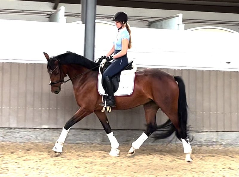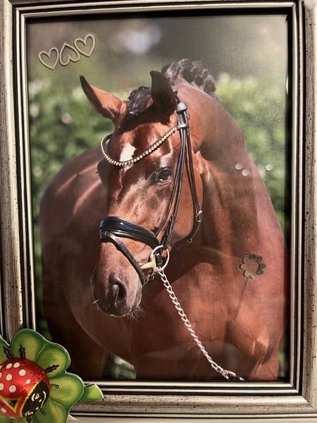 Herzensangelegenheit Schweren Herzens suchen wir für unsere wunderschöne 8 jährige, 168cm große Westfalenstute von For Final X Floresco ein neues Zuhause. Sie ist seit 4-jährig in unserem Besitz, sehr menschenbezogen und möchte eine feste Bezugsperson. Farina benötigt einen feinfühligen, losgelassenen Reiter, der in der Lage ist, ihr Sicherheit zu geben und sie bestimmt, aber gefühlvoll zu reiten. Sie ist kein Durchgänger, Steiger o.ä., aber zeigt bei manchen Reitern ein klemmiges Verhalten. Wenn es aber passt, hat man mit ihr die Chance auf ein ganz ganz tolles und qualitätsvolles Dressurpferd. Sie befindet sich dressurmäßig auf etwa L** Niveau und ist A** hoch platziert. Sie kennt Gymnastikstangenarbeit, Ausritte, ohne Sattel- und mit Halsring reiten. Farina liegt unserer Familie sehr am Herzen und wird nur in allerbeste Hände verkauft. Keine Händler! Ein Röntgen TÜV inkl. Genick, HWS und Rücken aus 2022 liegt vor. Für ein Probereiten berechnen wir 35€, die beim Kauf selbstverständlich verrechnet werden. Weitere Videos senden wir gerne auf Anfrage per Whats App zu.
