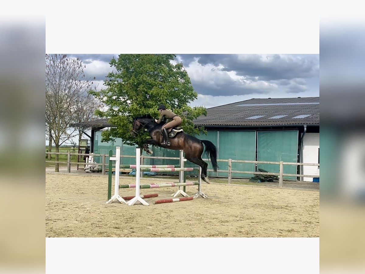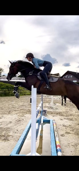 For sale is a 2018-born dark bay dressage mare by Zoom, who impresses both in the dressage arena and over fences. The mare stands approximately 17.1 hh and features three outstanding basic gaits with plenty of rhythm, scope, and natural balance. She is trained to L-level and shows talent and motivation starting from M-level exercises. She has already demonstrated her sporting potential: - Won A-Dressage with a score of 7.8 - Placed in Stil-A with an 8.4 In addition to her dressage aptitude, she is cheerful, attentive, and talented in jumping. She approaches fences with overview, good technique, and sufficient scope, making her an ideal all-round or eventing prospect. The mare is very intelligent and eager to learn, quickly understanding new lessons, and possesses enormous movement potential. She is looking for an experienced rider who can further develop her qualities and use her in a balanced manner. She has already successfully completed L-level cross-country courses with overview. Minor veterinary findings are available but do not limit her sporting suitability. An exciting young horse for ambitious riders seeking a high-quality dressage horse with additional jumping ability.