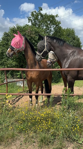 Zum Verkauf steht eine bildhübsche & leichtfüßige braune Stute vom Allegro Sun aus einer Mutter vom Polytraum, aufgrund der Aufgabe des Springsportes. Die fast neunjährige Stute ist ca. 163 cm groß und überzeugt durch ihr überaus freundliches Wesen und ihre Leistungsbereitschaft im Parcour. Louisa ist A* und A** platziert Geht brav ins Gelände und kennt Hänger, Transporter, LKW Sie wurde damals getüvt, inklusive Rücken - da war alles ohne Befund. Seit sie in meinem Besitz ist war sie nie krank,lahm oder sonstiges. Aktuell steht sie in Boxenhaltung mit täglichen Weide-/Paddockgang. Für das Vorreiten/Probereiten erlaube ich mir eine Gebühr von 30€ zu erheben. Diese wird beim Kauf gutgeschrieben
