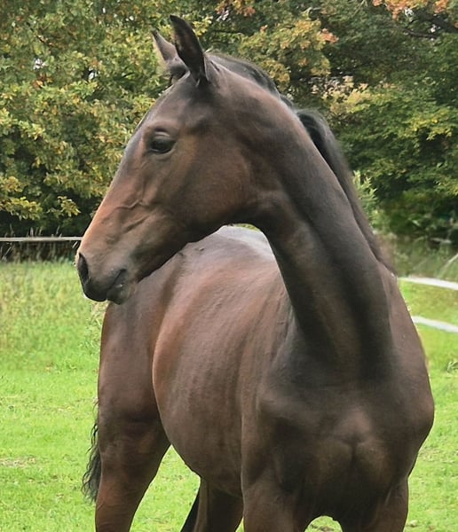 Wunderschönes Stutfohlen aus 04/25, groß gewachsen und super artig. Wächst im Herdenverband auf. Hat wunderbar Schwungvolle GGA mit guter Stabilität. Ganz klassisch in der Farbe, komplett dkl. Braun ohne Abzeichen. Kennt selbstverständlich das Fohlen ABC mit Halftern, leichtes Führen, Putzen, Hufschmied, Wurmkur. Vater Felissimo ist mit seinen 9 Jahren unter Anja Wilimzig, mittlerweile erfolgreich in Dressurprüfungen der Klasse S, St. Georg Spezial, unterwegs. Sein Vater Franziskus war eins der Erfolgspferde in der Dressur ( Grand Prix Spezial, S****, CHIO Aachen etc) mit Ingrid Klimke. Muttervater Cennin war 2018 einer der Top 50 Dressurpferde der Welt ( Platz 21) im WBFSH Ranking. Auch 2025 macht er weiter auf sich aufmerksam unter seiner Reiterin Dania Gschwind-Widmer(Taiwan). In Görlitz platzierten sie sich an 5ter Stelle in einer FEI Intermediaire I und Prix St. Georges. Desweiteren führt die Mutter wertvolles und vorallem sehr haltbares Blut über Biotop × Pit I × Pazifik. Wie führen eine kleine, sehr liebevolle Zucht wo wir dieses Jahr dieses tolle Stutfohlen anbieten möchten. Sie ist täglich am Menschen und somit sehr zutraulich und verschmust. Das Fohlen kann fast täglich persönlich angesehen werden. Ein Fohlentüv ist schon erstellt, ohne Mängel. Dieser kann natürlich jederzeit aktuell gemacht werden. ✨ Hinweis zum Preis: Der Preis ist fair und mit Bedacht gewählt – schließlich steckt viel Herzblut, Zeit und Liebe in der Aufzucht. ❤️ In der Anzeige wird er daher nicht weiter reduziert. Bei einem persönlichen Gespräch finden wir aber bestimmt eine Lösung, mit der beide Seiten zufrieden lächeln – und das Fohlen in die richtigen Hände kommt. 🐴